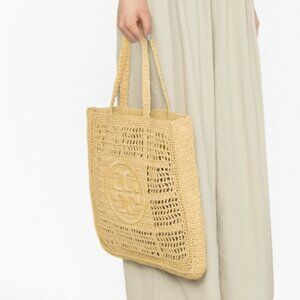 NWT! Tory Burch "ELLA" Crochet Tote Beige