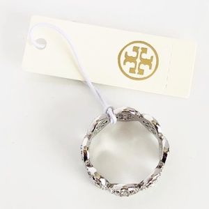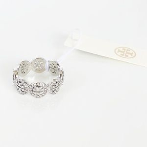 NWT Tory Burch Miller Swarovski Crystal Pave Ring in Silver Retail $215