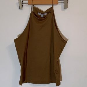 NWT Brown coloured tank top in a halter style. Never worn except for these photos. Super soft, stretchy material with an inner lining layer (see 6th pic) to give it more structure. Size S.