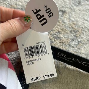 Chic bikini with bold geometric patterns. Ideal for a trendy beach look