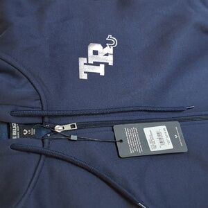 NWT True Religion Blue Large Zip Up Draw String Hoodie