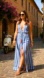 Breezy, Tularosa Essie indigo striped maxi dress features deep V neckline, playful cutouts