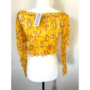 NWT URBAN OUTFITTERS Isla Top Sz Medium Yellow Sunflower Crop Top Ruched Sleeves