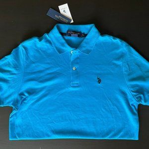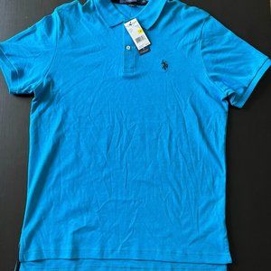NWT US Polo Assn. Polo Shirt Mens Medium Blue Short Sleeve Collared Logo Slit