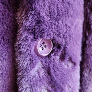 Uchuu, NWT, new with tags, unworn, reversible, faux fur, faux shearling, sleeveless, jacket, coat, long vest, plush, soft, fluffy, fuzzy, silky, touchable, cozy, warm, synthetic, lilac, purple, violet, lavender, layering, layer, Montreal brand, Montreal, Canadian design, local, Canada, cold weather, outerwear, cabincore, cozycore, comfy, comfortable, standout, eye-catching, unique, statement piece, fall, winter, commute, errands, weekend, citywear, colorful, wide, relaxed fit, oversized, luxurious