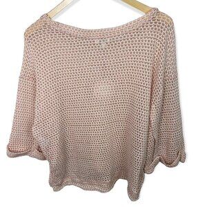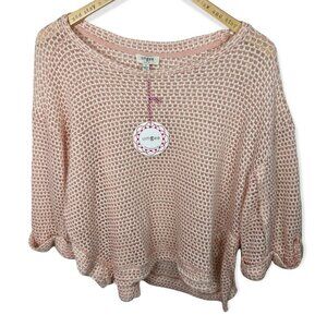 NWT Umgee Baby Pink High Low Waffle Knit Top Size Small Cotton 3/4 Sleeve Boho S