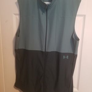 Men's Fitted Under Armour vanish hybrid vest. Material is water resistant, wicks sweat and dries really fast.