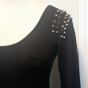 NWT VAMPED BOUTIQUE Rough Edges Bodysuit Black Spiked shoulders goth academia SM
