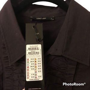 NWT ⭐️ VERO MODA Button Up Ruffle Purple Poplin Cotton Fitted Dress Shirt Top L