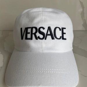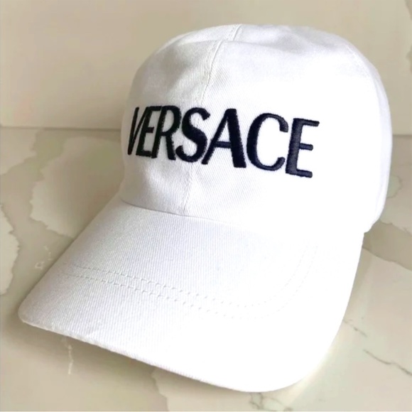 NWT VERSACE WHITE BASEBALL HAT BLACK LOGO EMBROIDERY UNISEX SUMMER TRAVEL BEACH