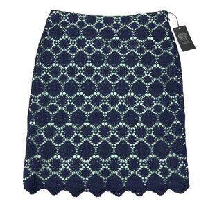 NWT VINCE CAMUTO Downtown Oasis Crochet Lace Pencil Skirt Sz 2 Blue