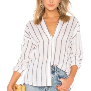 NWT VINCE Textured Stripe Cotton Blouse Optic White