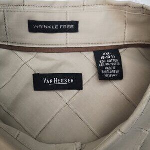 NWT Van Heusen Men's Size XXL Wrinkle Free Beige Plaid Button Front Shirt