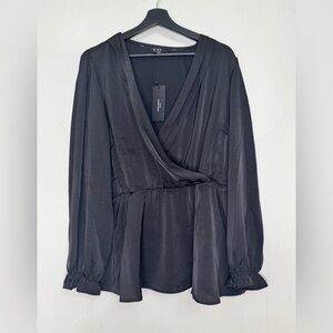 NWT Vero Moda Curve Mary Satin Draped Deep Neck Line Wrap Collarless Blouse