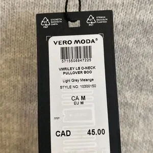 NWT Vero Moda Light Grey Riley Pullover