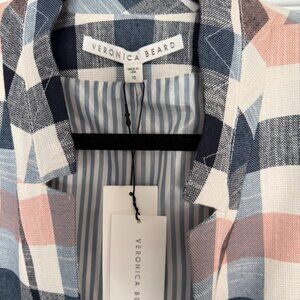 NWT Veronica Bear Women's Pink and Blue Plaid Upcollar Blazer - Size 16