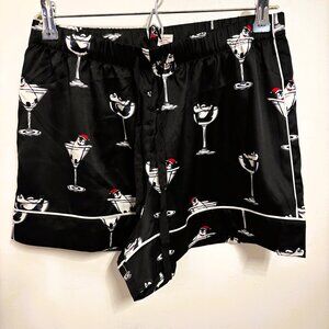 Victoria's Secret Black Cocktail Penguins Satin Short Pyjama Set - Size Small