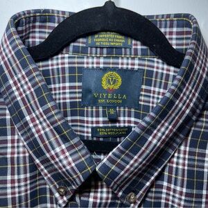 Vieylla Men's Navy plaid wool cotton blend long sleeve button down shirt in 3X