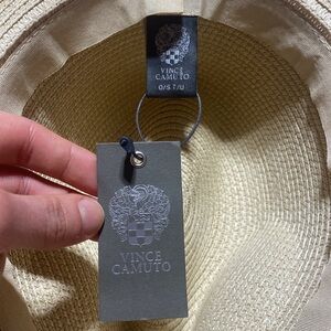NWT Vince Camuto Straw Bucket Summer Beachy Hat With Fabric Pink Tie