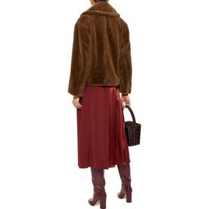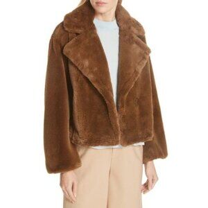 NWT Vince walnut brown faux fur double breasted short coat, S