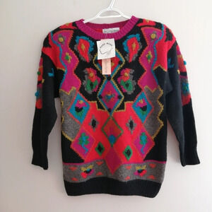 vintage, wool, embroidered, knit, vibrant, colourful, floral, geometic