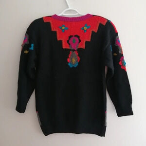 Vintage Hand Made René Derhy Paris Wool Blend Vibrant Embroidered Knit Sweater