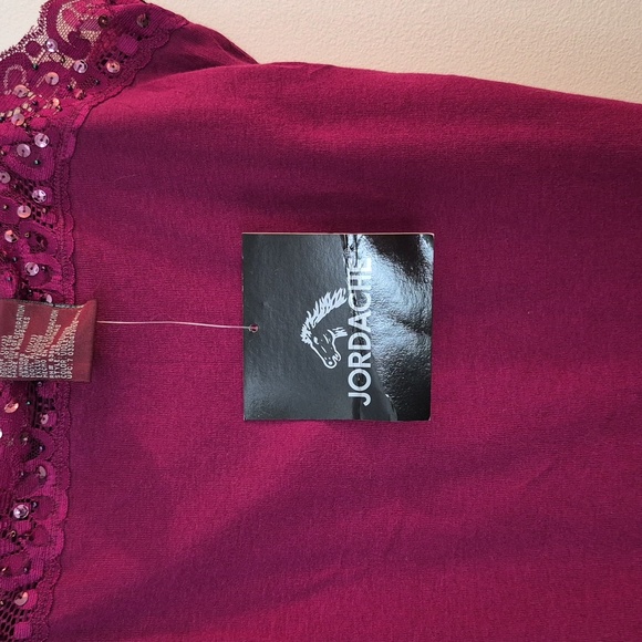 NWT Vintage Jordache Lace Trim Bead And Sequence Embellished Lettuce Hem Large