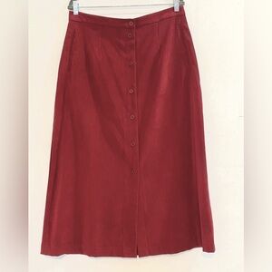 NWT Vintage Lindor Plus Sz 16P Suede Button Front Pockets Burgundy Midi Skirt