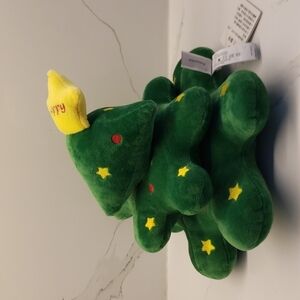 This new plush Christmas tree is so cute and soft. Yellow star on tree reads "happy".