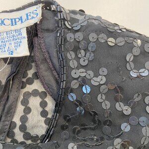 NWT Vintage Principles Black Cocktail Dress Silk Sequin Short Sleeve Sheer Back