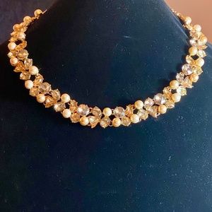 NWT Vintage Talbots Necklace in Yellow Crystal and Faux-Pearls