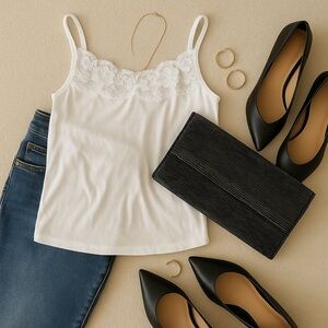 Vintage White Lace Camisole Tank by Jessica | Petite Small | Made in Canada