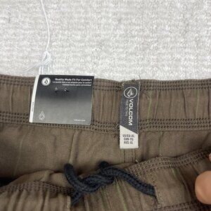 NWT Volcom Psychstone Trousers Brown / Green Lines Elastic Waist Pants Men's XL