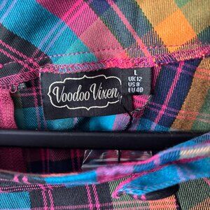 NWT Voodoo Vixen Size UK 12/ US 8 Multicolour Plaid Skirt with Waist Button Deta
