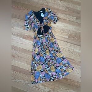 NWT WAYF ditsy floral cottage core dark cut out midi/maxi dress milk maid 6