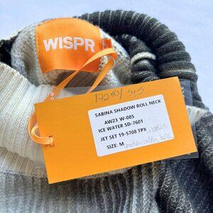 NWT WISPR WOMEN'S THE SABINA SILK BLEND SHADOW ROLL NECK SWEATER IN GRADIENT CREAM & GREY - M, Introducing the WISPR Sabina Shadow Silk-Blend Sweater, a stunning addition to your wardrobe. This stylish pullover features a grey print/Prism charcoal grey color/pattern, adding dimension to this neutral sweater.The dropped-shoulder sleeves give this sweater a relaxed and effortless look, perfect for any casual occasion.Made from a luxurious blend of 70% cotton, 20% nylon, and 10% silk, this sweater is not only stylish but also comfortable to wear. The neon yarn details, made from 72% polyester and 28% nylon, add a fun and unique touch to this sweater.With a length of approximately 22 inches from shoulder to hem, this sweater is designed to flatter your figure. Easy to care for, this sweater is machine washable and imported, making it a convenient and practical choice for your wardrobe. Elevate your look with the WISPR Sabina Shadow Silk-Blend Sweater today!