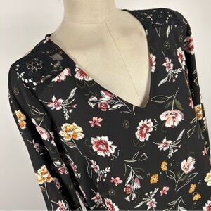 NWT Warehouse one Floral V-Neck Blouse - Black and Multicolor XS