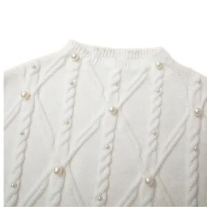 Add a chic, elegant layer to your wardrobe with this sleeveless knit vest featuring delicate pearl accents and a flattering high neckline. The textured knit fabric blends comfort with sophistication — perfect for both dressy and casual looks.
