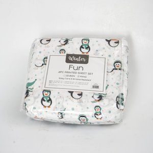 Add a soft and cozy seasonal accent to your bedding with this penguin-themed sheet set that will have you happily hibernating.