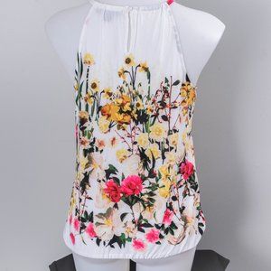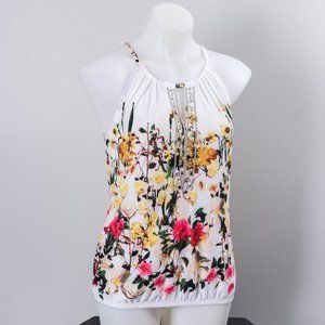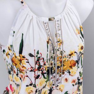 NWT White & Yellow Floral Rhinestone Keyhole Halter Top