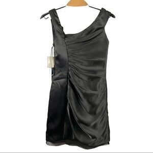 NWT White by Vera Wang Black Side Draped Satin Dress Size 6