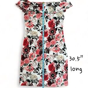 NWT Wild Child minidress in size medium bought at Simon’s Canada. This dress is so cute and just in time for Spring/Summer. It is a fitted dress with a beautiful floral print. It is made from 95% polyester and 5% spandex. It is a stretchy dress with light material and a little bit see-thru. Find measurements in the photos.