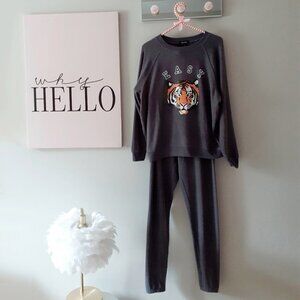 NWT Wildfox grey “Easy Tiger” graphic sweatshirt and joggers loungewear bundle