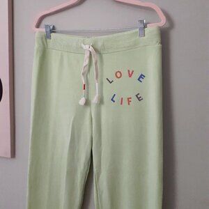 NWT Wildfox cotton blend lime green “Love Life” jogger trackpants, L