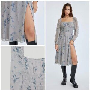 NWT Wilfred Bella Slit Dress Midi Long Sleeve Floral Dry Basil Granite ARITZIA
