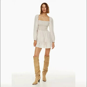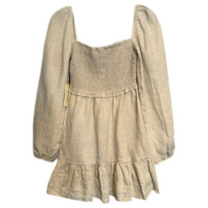 NWT Wilfred Tempest Linen Mini Dress Size XS Natural Ecru Smocked Prairie READ