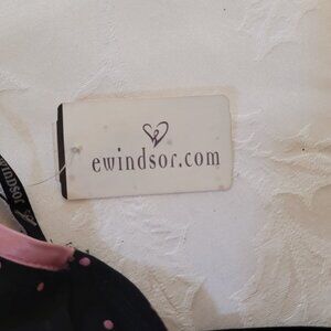Sweet and flattering, Y2K Windsor black with white polka dots, and pink satin trim.ties/bow, halter dress. Pink tie around the neck.
