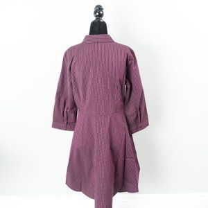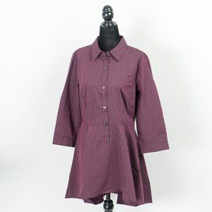 NWT Wine & Black Stripe Bal-Collar Button-Front Hi-Low Tunic - sz 8