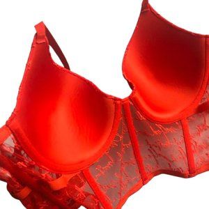 NWT Wolford Logo Obsessed Bustier Crop Top in Red Glow Size 34D