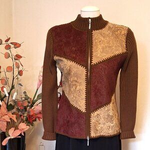 NWT Woman's Brown Multi Color Zip-Up Cardigan Knitwear Lightweight Sweater 6 S
